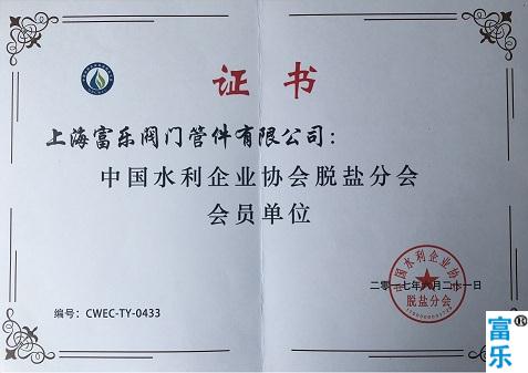 上海富乐阀门管件有限公司于2017年6月加入中国水利企业协会脱盐分会